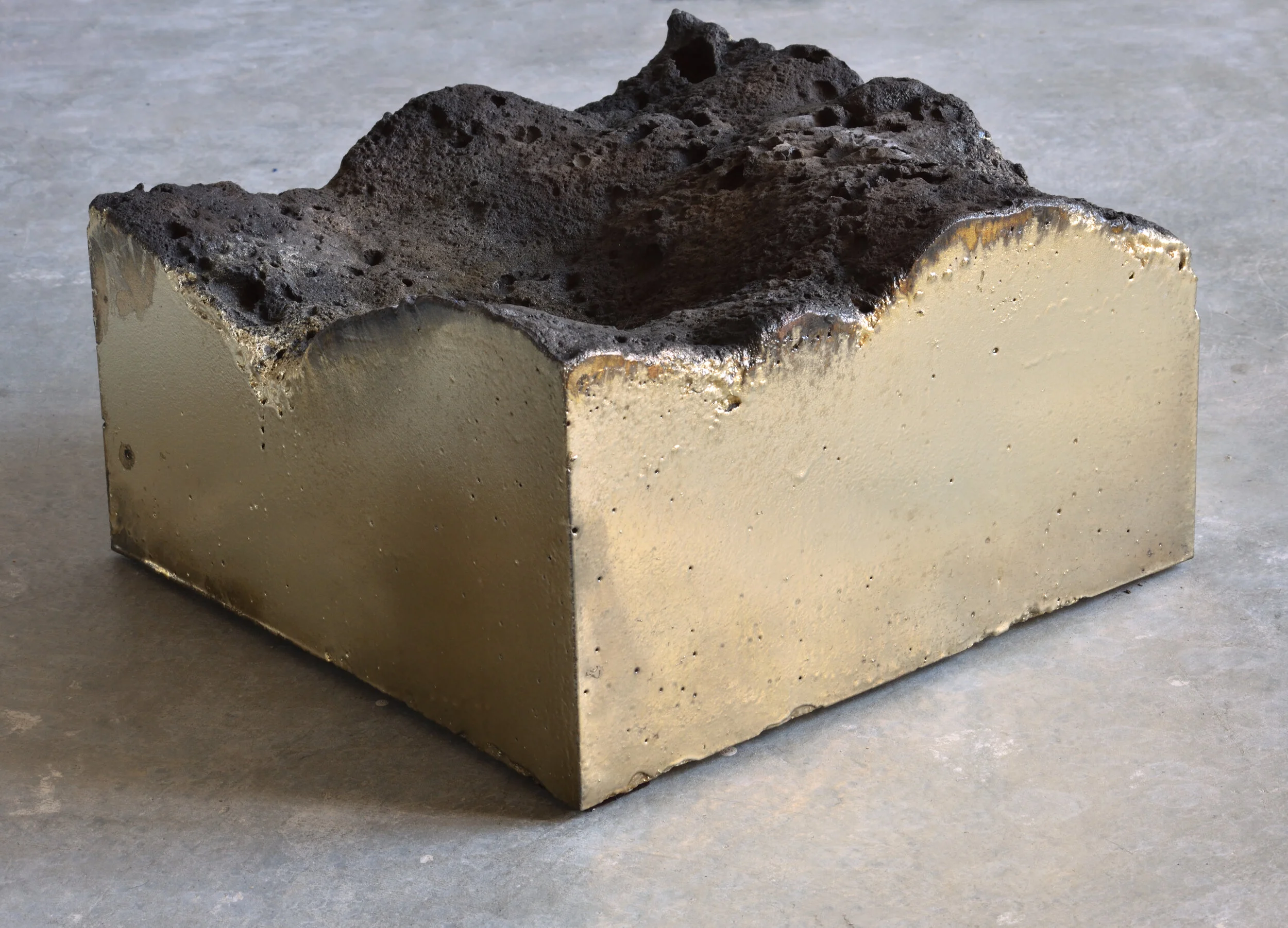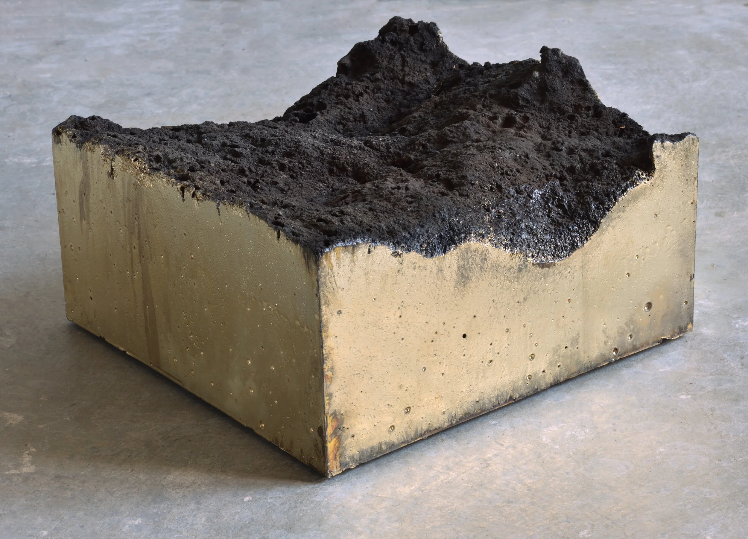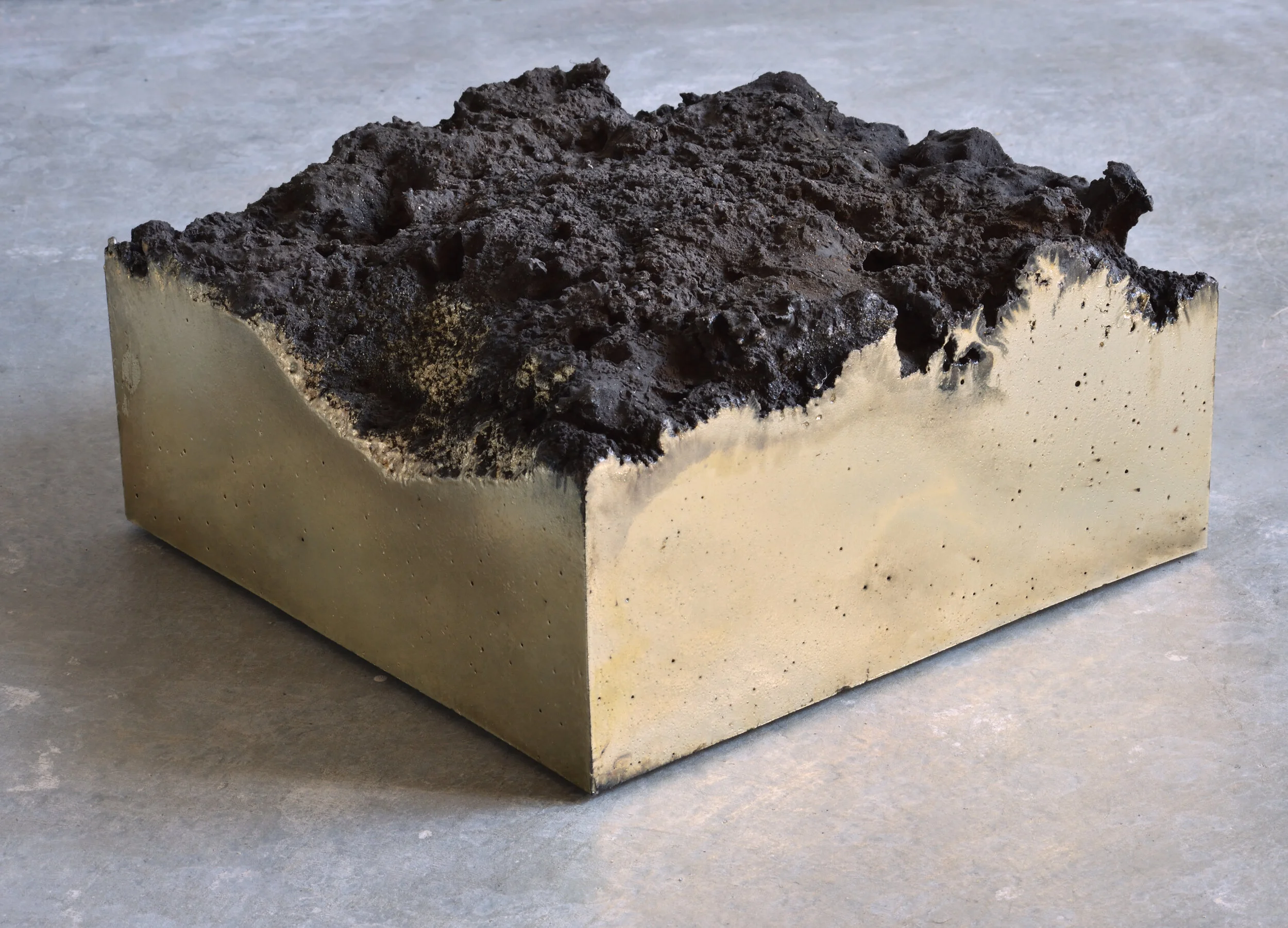 Hydrostone, silver, urethane, nylon fiber, sand, concrete colorant, felt
