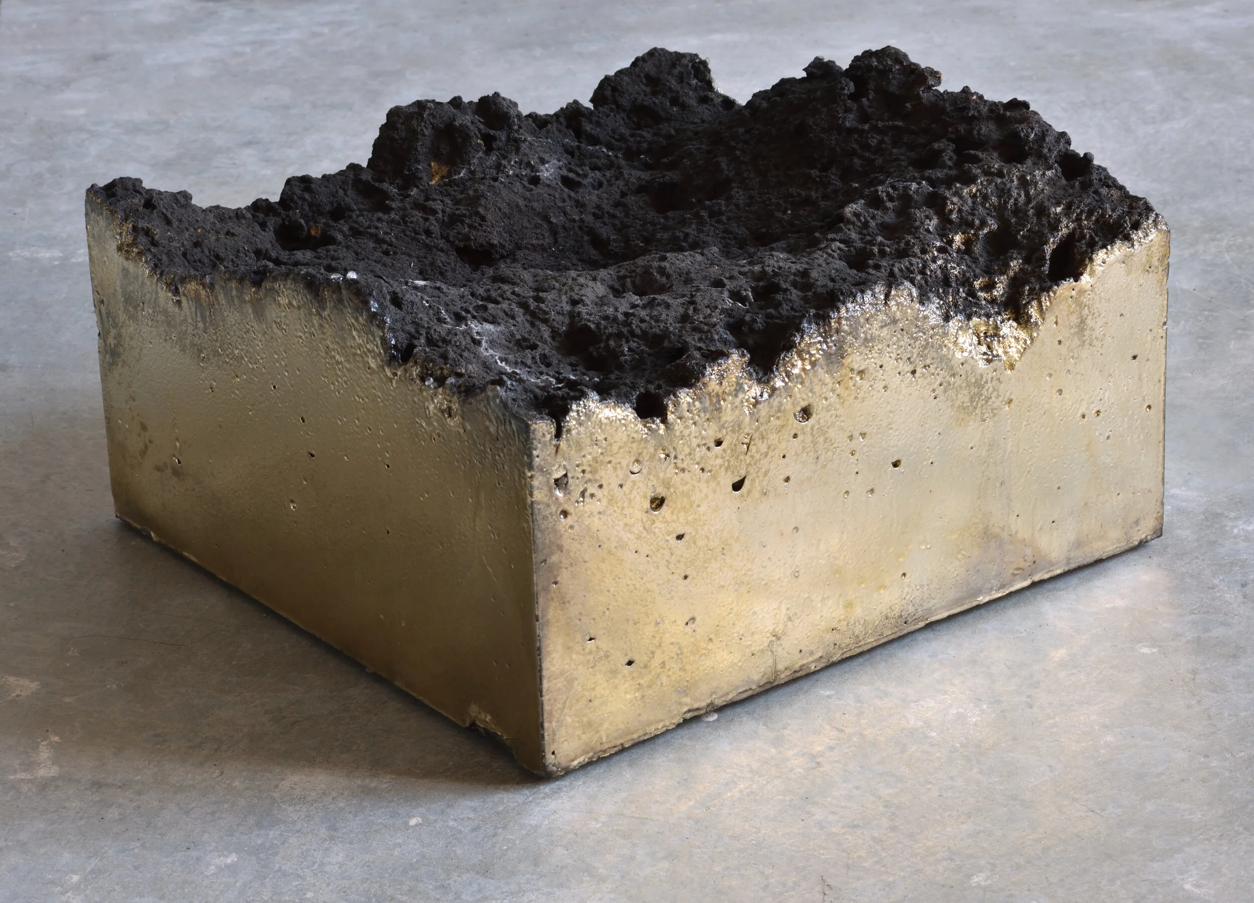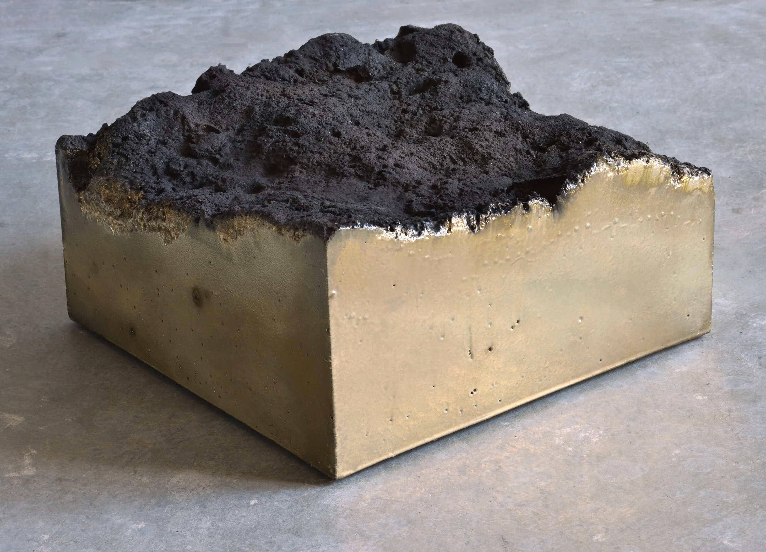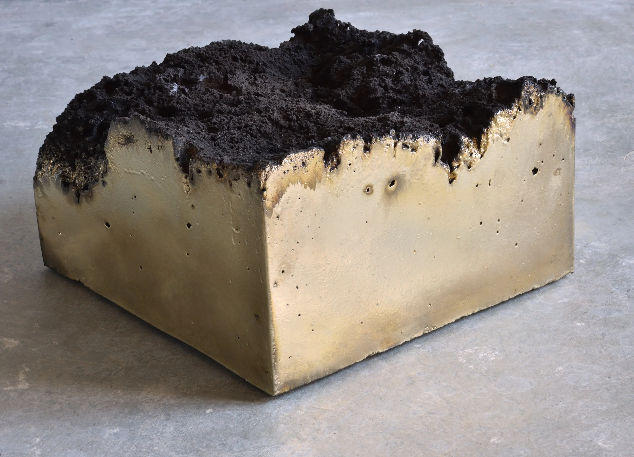 Hydrostone, silver, urethane, nylon fiber, sand, concrete colorant, felt